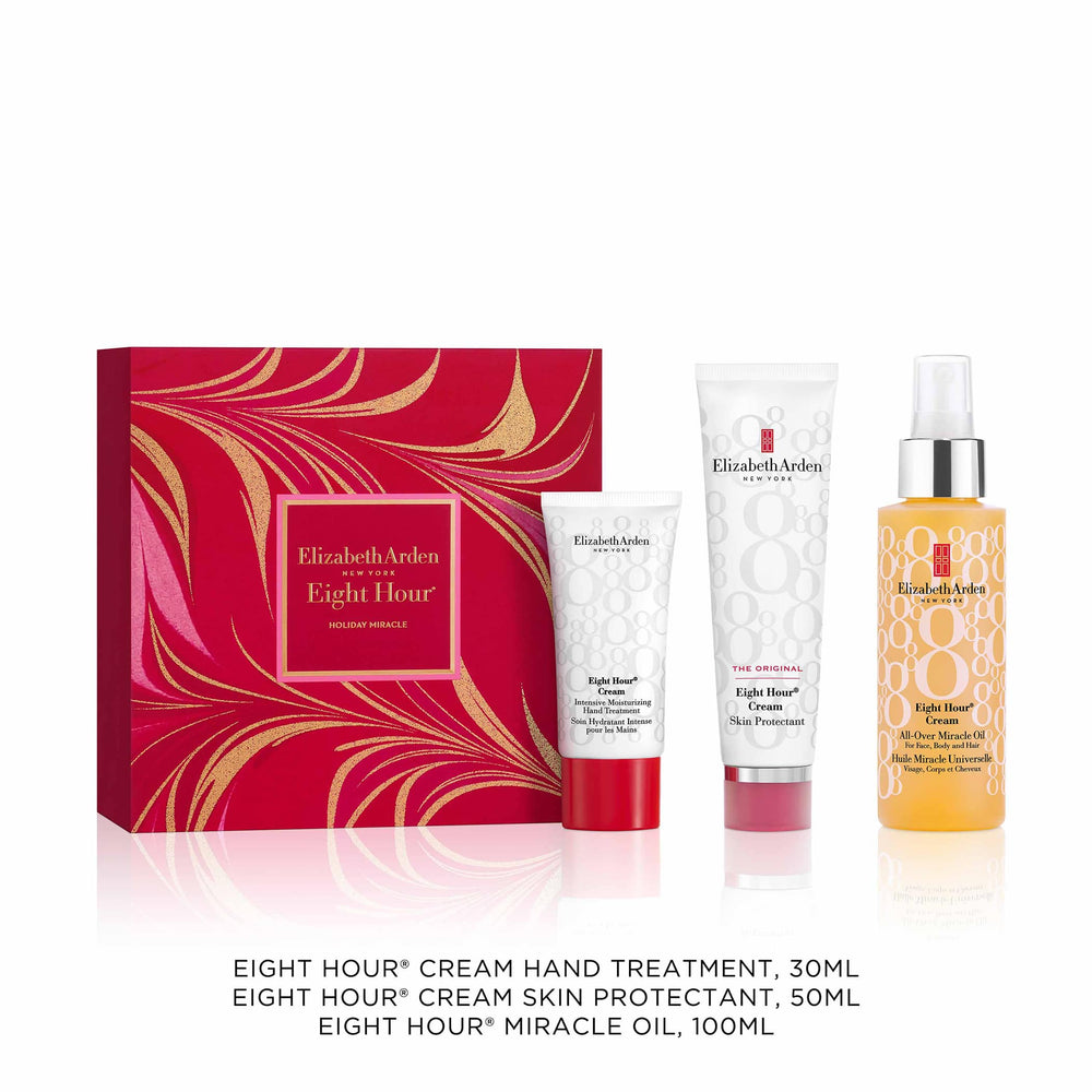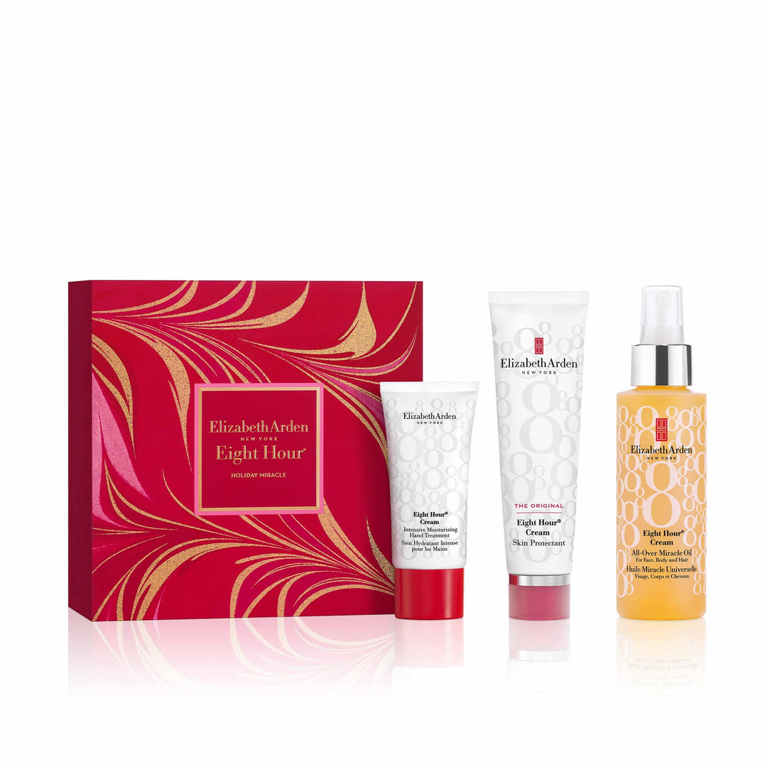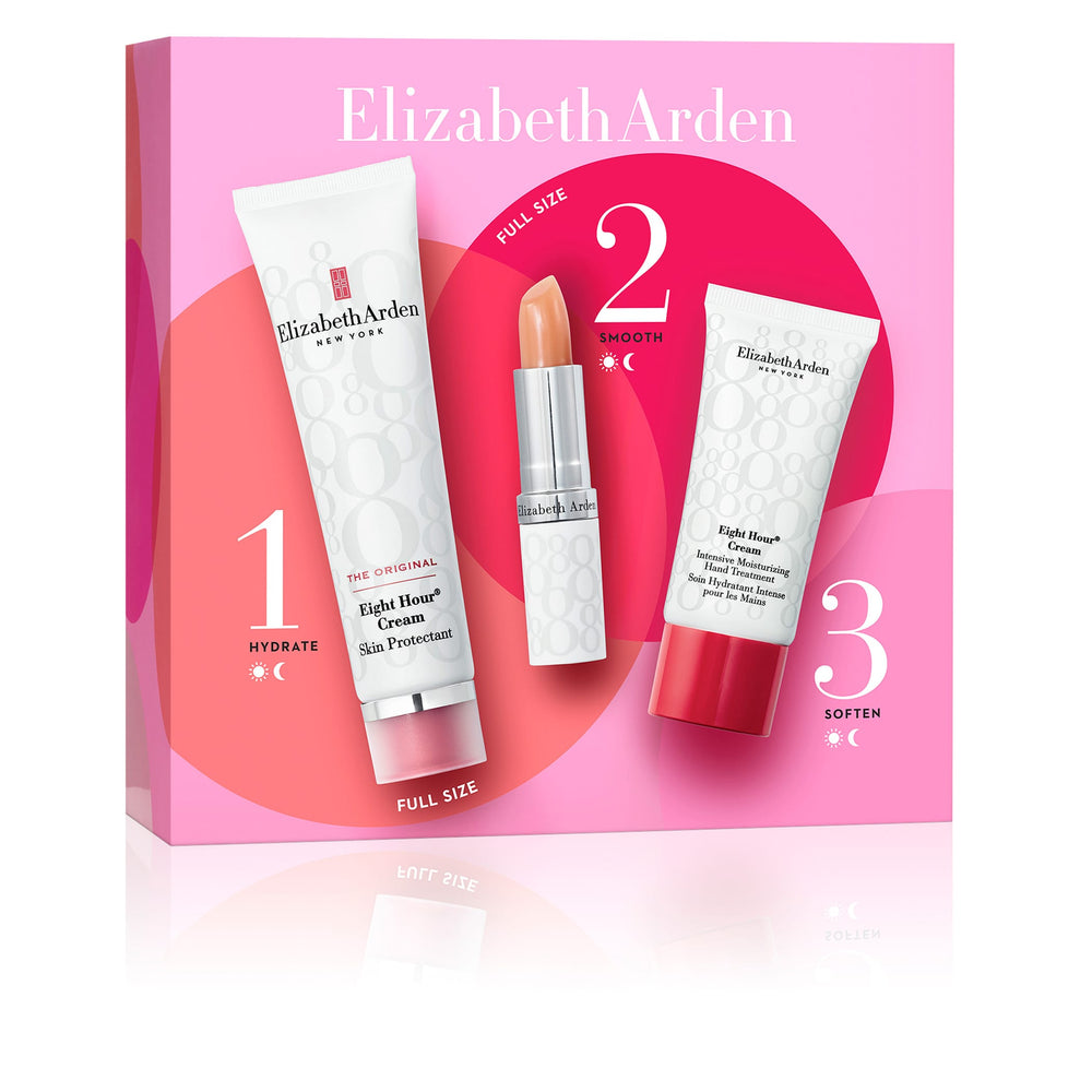 The “best” set depends on your skin’s needs. For multitasking hydration, the Eight Hour® Nourishing Skin Essentials 3-Piece Gift Set offer beauty essentials for every occasion and features the legendary Cream Skin Protectant.
