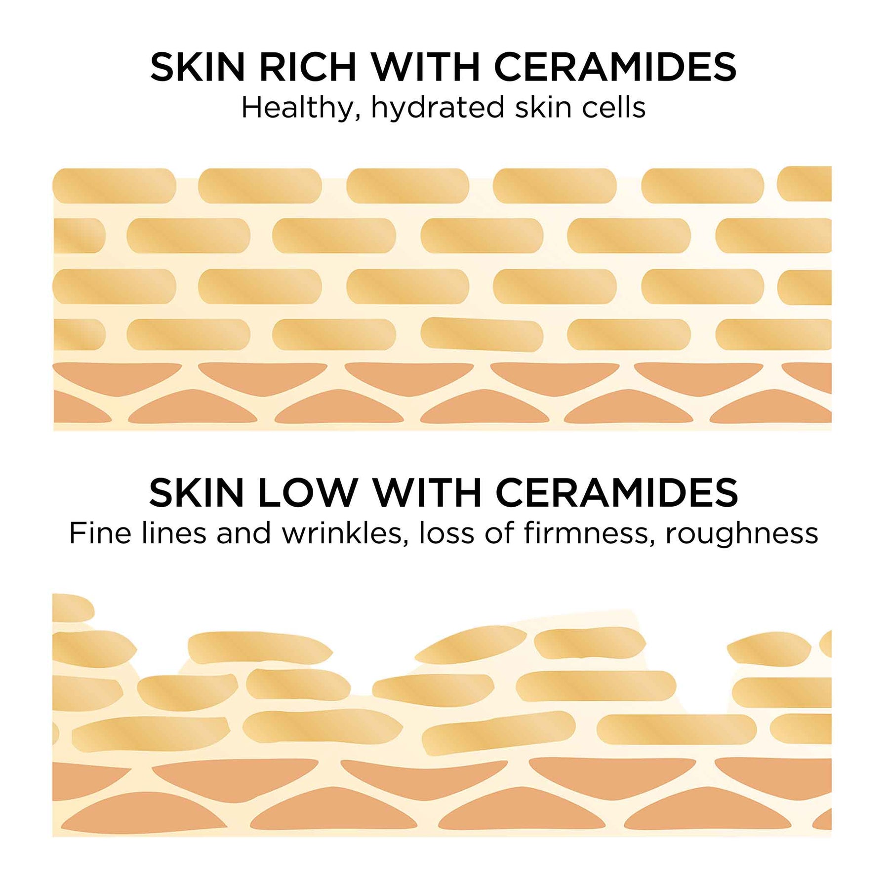 Imagine a brick wall. After years of exposure, the mortar between the bricks starts to break down. Your skin is no different. As you age, ceramides (the mortar) aren't produced at the same rate, resulting in a noticeable decline in ceramides by your 30's, and an even more dramatic decline by your 40's. Your skin begins to weaken and form wrinkles, dryness, uneven skin tone and loss of firmness.