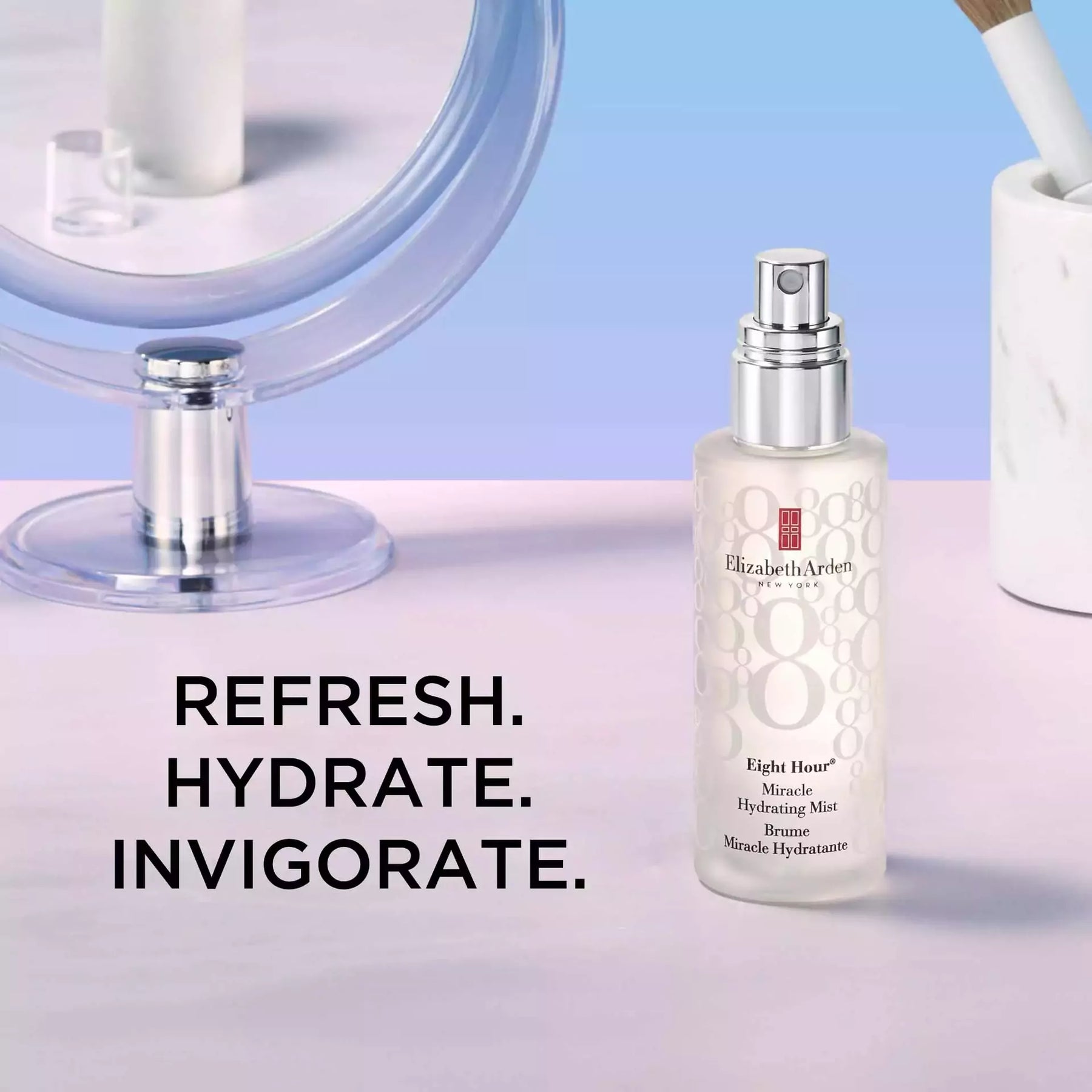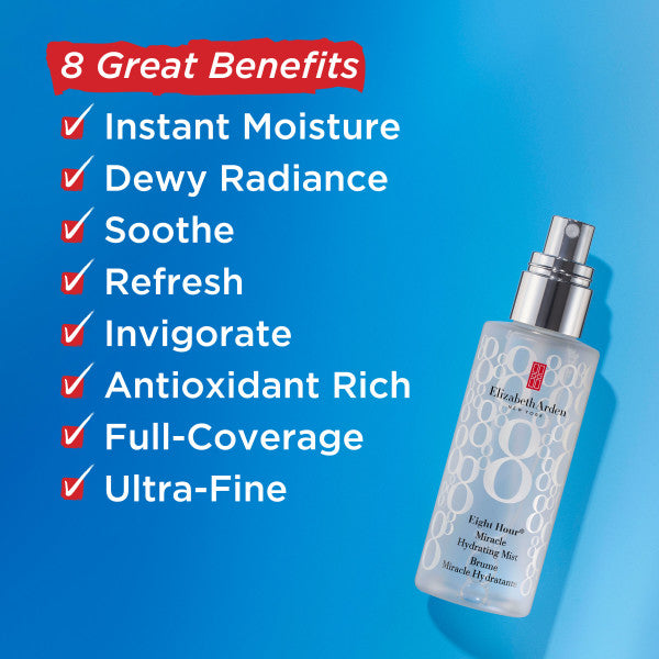 8 Great Benefits- hydrates, refreshes, soothes, invigorates, primes, ultra-fine mist, healthy-looking and plumps