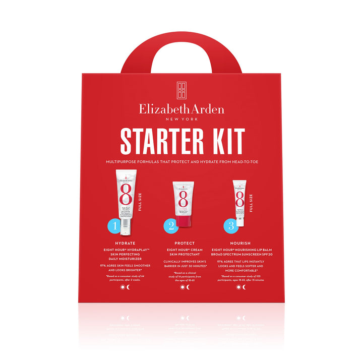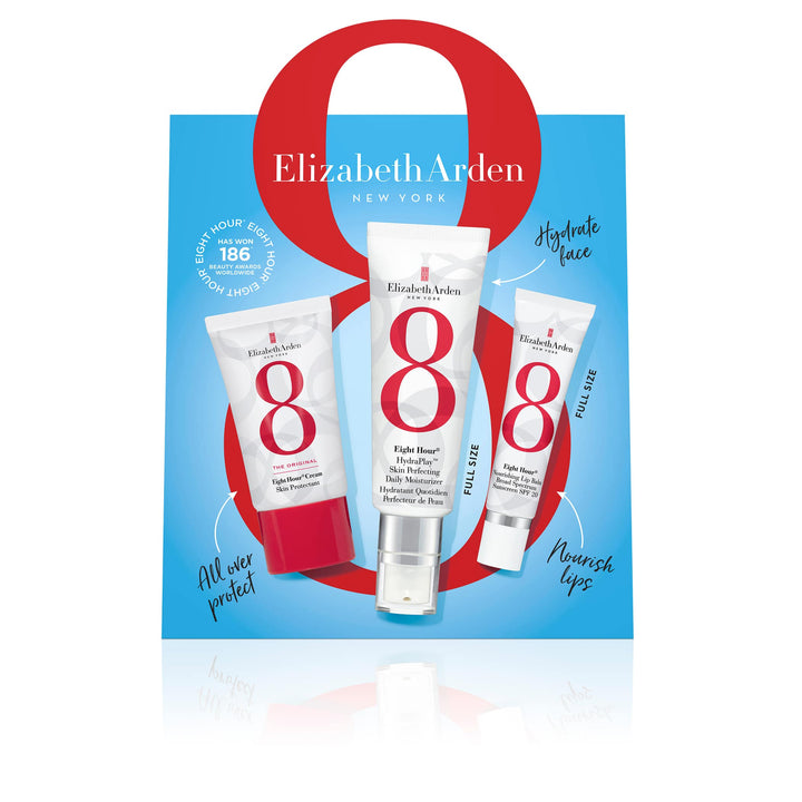 Apply Eight Hour® HydraPlay™ Skin Perfecting Daily Moisturizer and Eight Hour® Cream Skin Protectant to moisturize and protect skin day or night. Sweep Eight Hour® Nourishing Lip Balm over lips to smooth and soften.