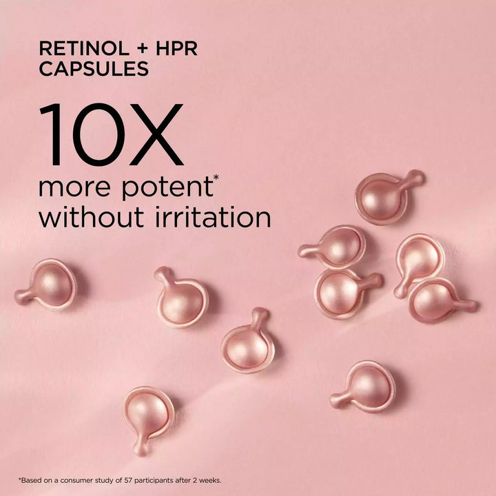 Retinol + HPR Capsules are 10 times more potent* without irritation. *Based on a consumer study of 57 participants after 2 weeks