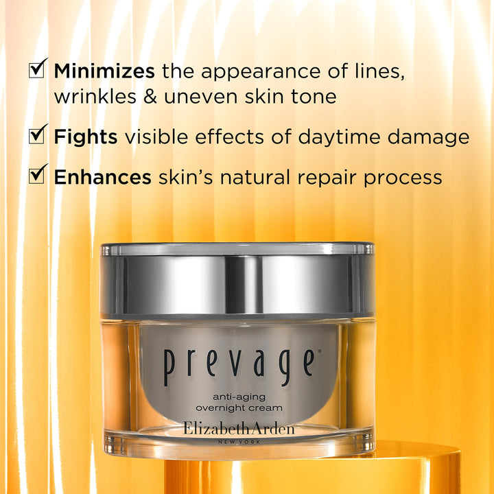 PREVAGE® Anti-Aging Overnight Cream minimizes the look of lines, wrinkles and sun damage while optimizing your skin’s natural repair process while you sleep.
