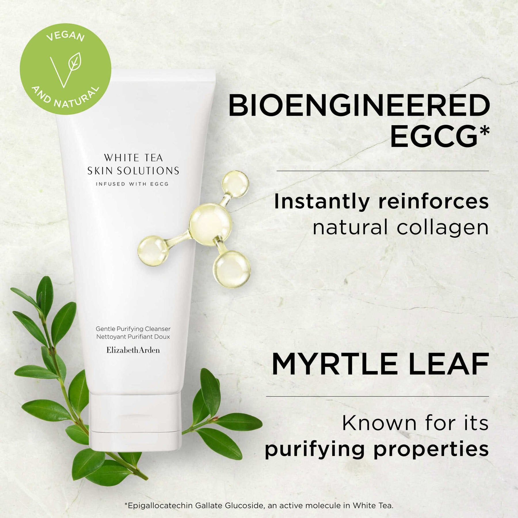White Tea Skin Solutions Gentle Purifying Cleanser is infused with antioxidant-rich EGCG1 to effectively dissolve facial makeup, impurities, and even excess sebum and defend against environmental aggressors. Blended with purifying Myrtle Leaf, this refreshing cleansing gel leaves skin soft and nourished without stripping away essential moisture. Instantly, skin feels balanced and soothed and looks healthy and radiant. Gentle enough for all skin types, even sensitive skin2.
