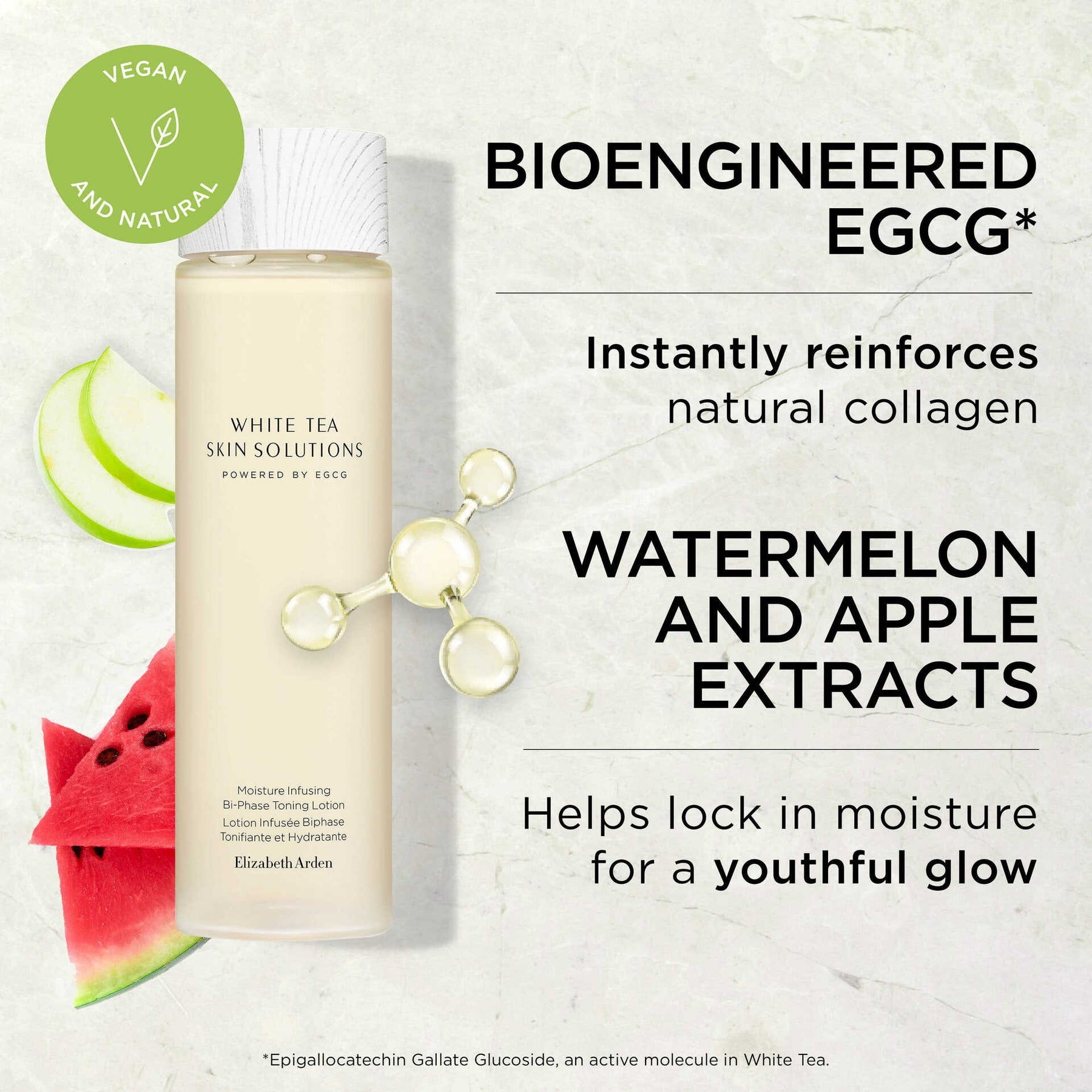 White Tea Skin Solutions Moisture Infusing Bi-Phase Toning Lotion, powered by EGCG1 is a soothing alcohol-free treatment lotion that replenishes lost moisture to smooth, soften and tone skin. Infused with an optimized blend of Watermelon, Lentil Fruit and Apple Extracts, it gently nourishes and cleanses to visibly improve fatigued skin for a healthy glowing look in just 7 days.
